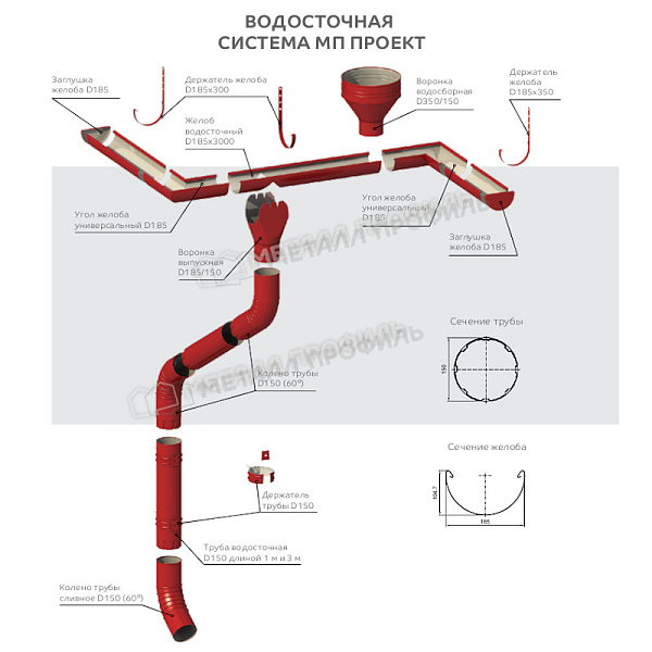 Держатель желоба Металл Профиль ПРОЕКТ D185х300 Ral 7004