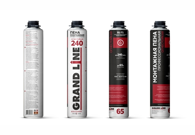 Grand Line 240 - профессиональная однокомпонентная огнестойкая монтажная пена на полиуретановой основе для герметизации швов и щелей в зданиях и помещениях с повышенными требованиями к пожарной безопасности. Монтажная пена Grand Line 240 является всесезонной и может использоваться при отрицательных температурах. Огнестойкая монтажная пена Grand Line 240 изготовлена по ТУ 2254-00159135965-05 и соответствует требованиям ГОСТ 30247.0-94 "Конструкции строительные".