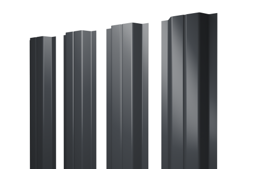 Описание товара: "Штакетник П-образный А с прямым резом 0,45 PE-Double RAL 7024 мокрый асфальт"