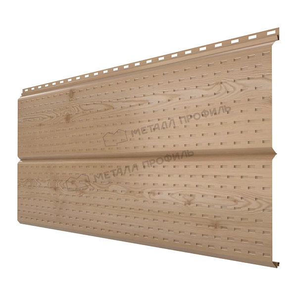 Софит МЕТАЛЛ ПРОФИЛЬ перфор. Lбрус-XL-14х335 (ECOSTEEL_MA-12-Античный Дуб-0.45) – это планки сайдинга Lбрус, на поверхности которых нанесена перфорация. Используется для подшивки кровельных свесов. Софит МЕТАЛЛ ПРОФИЛЬ перфор. Lбрус-XL-14х335 (ECOSTEEL_MA-12-Античный Дуб-0.45)подчёркивает завершённый и эстетичный вид дома. Отверстия в панелях обеспечивают свободную циркуляцию воздуха под кровлей и предохраняют от появления грибка, конденсата, плесени.Покрытие ECOSTEEL®: