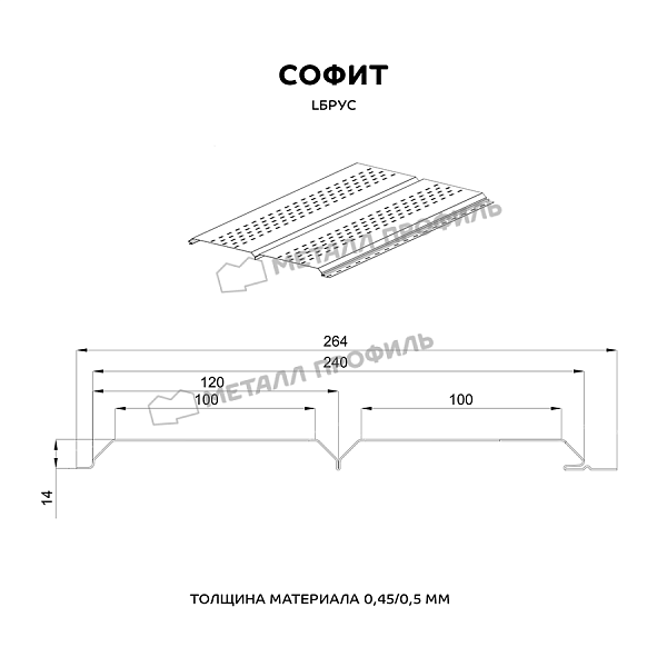 Описание товара: "Софит Металл Профиль перфор. Lбрус-XL-14х335 (VALORI-20-DarkGrey-0.5)"