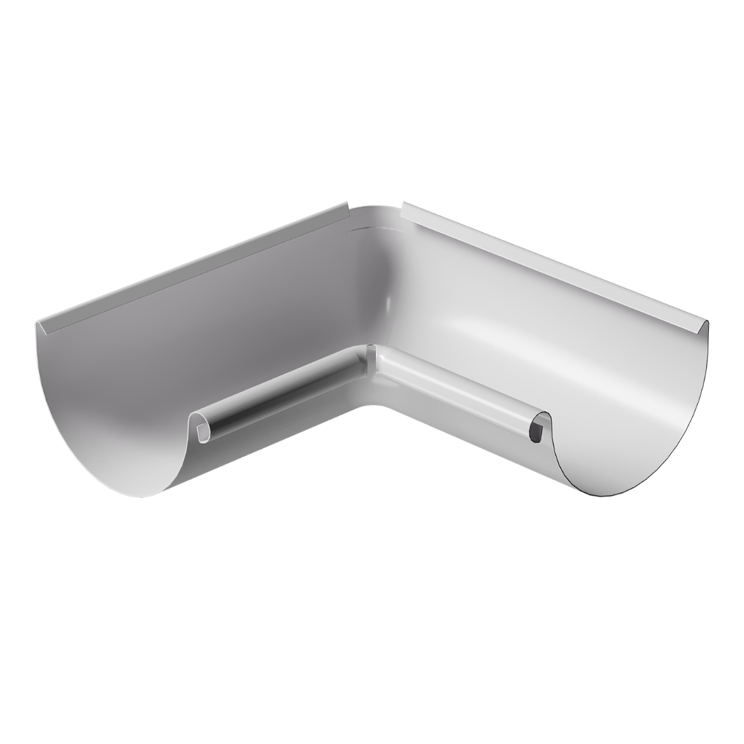 Два желоба на внутренних углах здания можно соединить под углом 135 или 90 градусов с помощью углового элемента. Изделие внутренний угол желоба 90˚ «Stal Premium» имеет четыре варианта цвета, включая нежный оттенок белого «Пломбир».
